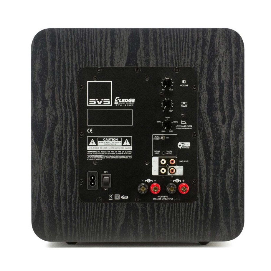 Przyciski sterujące pozwalające na precyzyjne i wolne od szumów zmiany ustawień. Zestaw gniazd połączeniowych ułatwia integrację subwoofera z każdym systemem audio i systemem kina domowego.